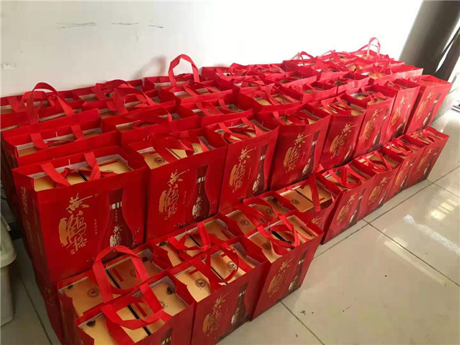 我公司本著以人為本,為廣大員工準備了豐富的年貨,發(fā)放酒、砂糖桔、食用油等物質(zhì),體現(xiàn)著濃濃的暖意。