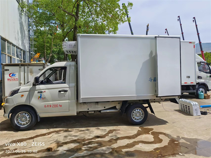 據(jù)悉,該款冷藏車是為安徽合肥一食品公司定制,它搭載東安115馬力發(fā)動機(jī),廂體尺寸為2795×1545×1670mm,整車尺寸為4960×1790×2610mm,帶方向助力,駕駛室內(nèi)帶空調(diào),配置175真空胎。
