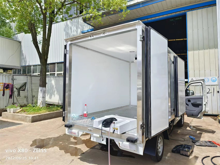 由于運(yùn)輸物質(zhì)主要為食品、蔬菜,應(yīng)用戶要求安裝零下5度華泰牌制冷機(jī)組,且該冷藏車開設(shè)有側(cè)門,且寬度特制為1000mm,方便實(shí)際裝卸作業(yè)。