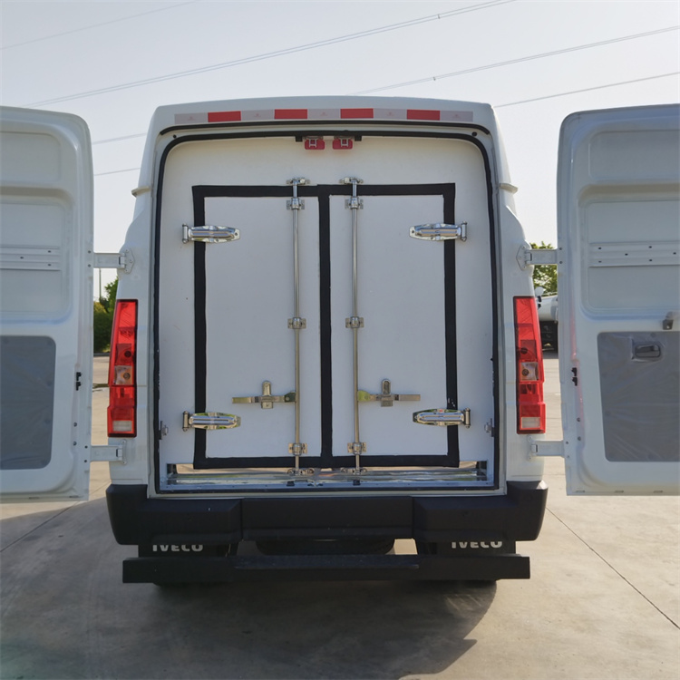 冷藏車采用內(nèi)外玻璃鋼,中間填充聚氨酯擠塑板,高強(qiáng)度粘合劑、真空負(fù)壓一次成型。廂體底部為塑鋼花紋板,門邊條采用防雨設(shè)計(jì)和迷宮式橡膠密封條,不銹鋼門鎖,加厚型不銹鋼后門合頁(yè)及鎖件,廂體內(nèi)采用LED照明燈。