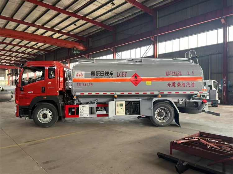 罐體采用優(yōu)質(zhì)碳鋼制作,單倉帶泵(泵可自吸自排),一個(gè)歐標(biāo)罐口,兩個(gè)呼吸閥,一個(gè)緊急切斷裝置,一個(gè)油氣回收裝置,一個(gè)防液流探桿,一個(gè)下裝油口。帶折疊升降護(hù)欄,一個(gè)工具箱,配一個(gè)防火帽,兩根與罐體等長的輸油管,兩個(gè)滅火器,其余廠內(nèi)標(biāo)配。保證罐體及整車外形尺寸按公告制作。